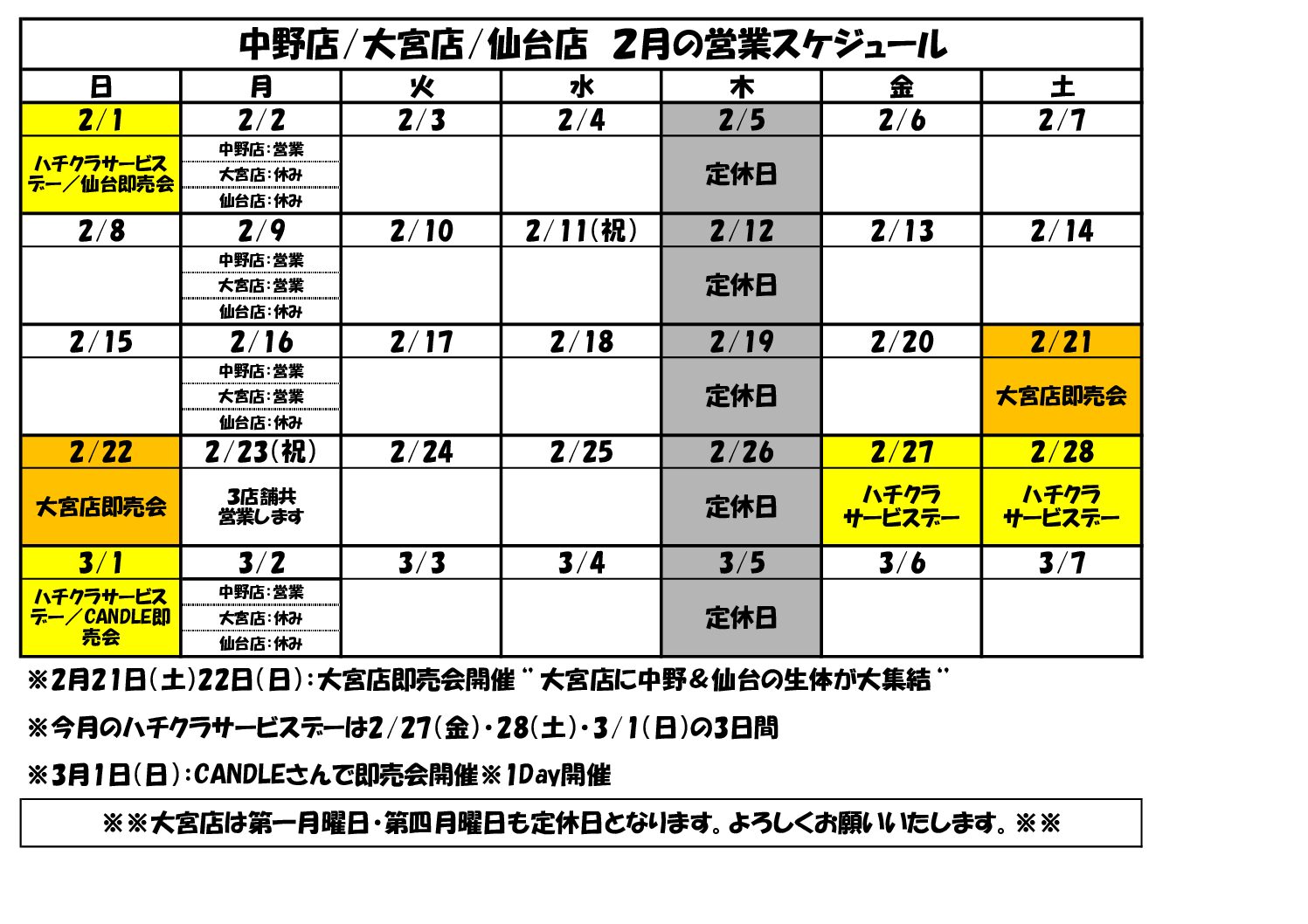 ※大宮店は今月より第一月曜日・第四月曜日も定休日となります。