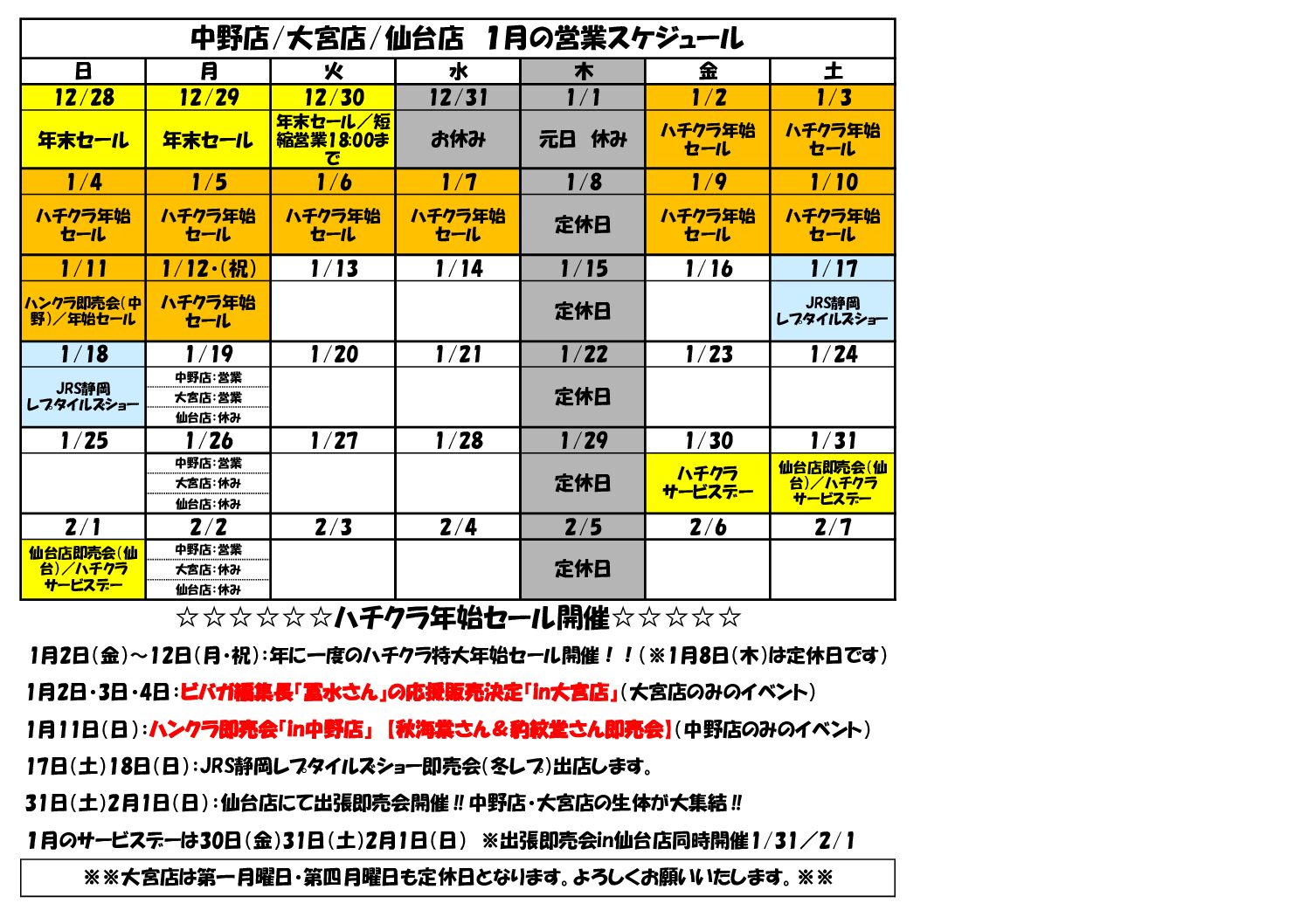 毎年恒例の特大セール『ハチクラ年始セール』日程決定しました