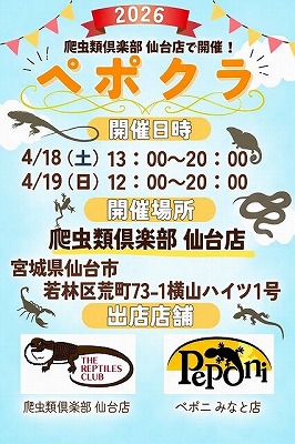 開催:『爬虫類倶楽部 仙台店