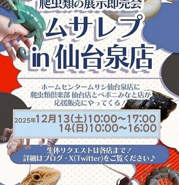 こんばんは!いよいよ今週末開催!!12/13(土)、14(日)の2日間、ホームセンタームサシ仙台泉店様にて、「ムサレプ」開催します…